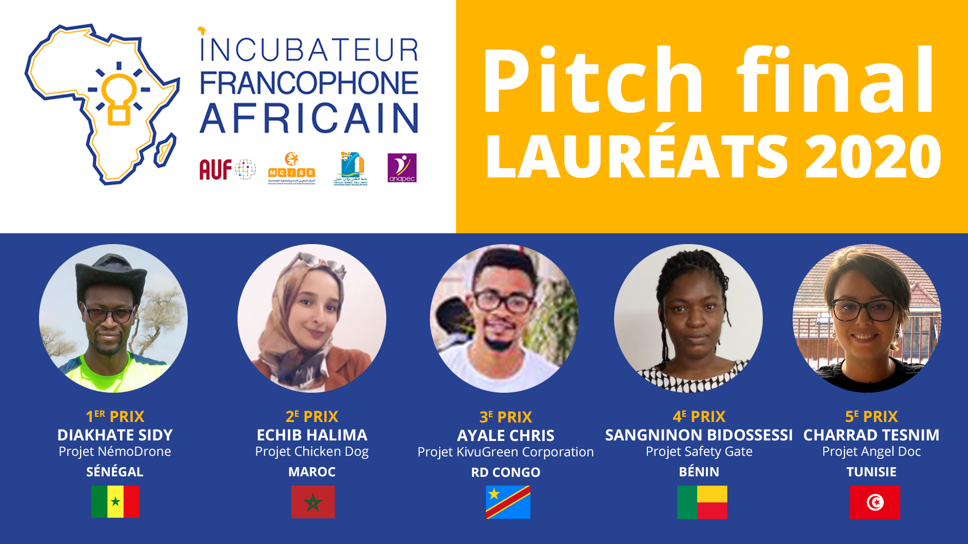 5 projets innovants à impact social et environnemental primés dans le cadre de l’Incubateur Francophone Africain 2020
