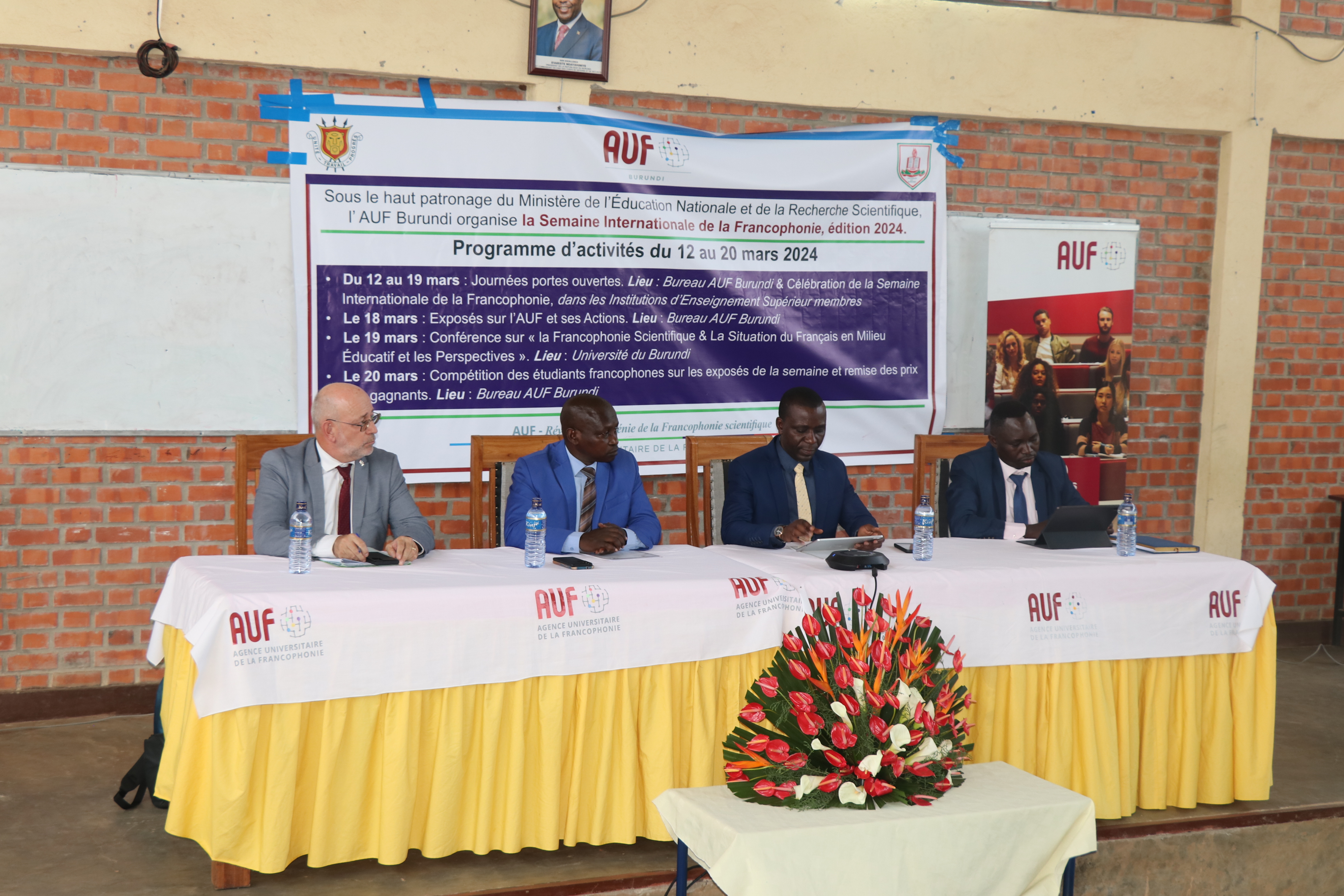 Les journées portes ouvertes au Bureau National AUF-Burundi ont offert une immersion dans les programmes et services déployés par l’AUF pour une Francophonie scientifique des solutions. Cet événement a permis aux participants de découvrir les initiatives novatrices soutenues par l’AUF et de s’engager dans des discussions sur l’importance de la langue française dans le domaine de la recherche et de l’enseignement supérieur.