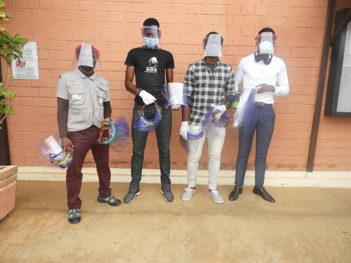 Merci bien. La crise sanitaire due à la Covid-19 n’a laissé personne indifférent. Un très grand mouvement de Makers s’est mobilisé à travers le monde, pour apporter une contribution à la riposte de cette pandémie. Ongola Fablab s’est inscrit dans cette mouvance. Nous avons opté pour un projet de fabrication des visières de protection faciale du personnel soignant. Une visière est un dispositif de protection du visage contre les postillons émis et/ou reçus. Les visières ont aussi l’avantage de pouvoir être retirées en minimisant le risque de toucher le visage et d’être réutilisées après un lavage avec du désinfectant. Ce projet a bénéficié de soutien financier de l’AUF et la Fondation Orange. Pour un budget d’un peu plus de 5.000 €, nous avons produit plus de 2.500 visières en deux semaines.