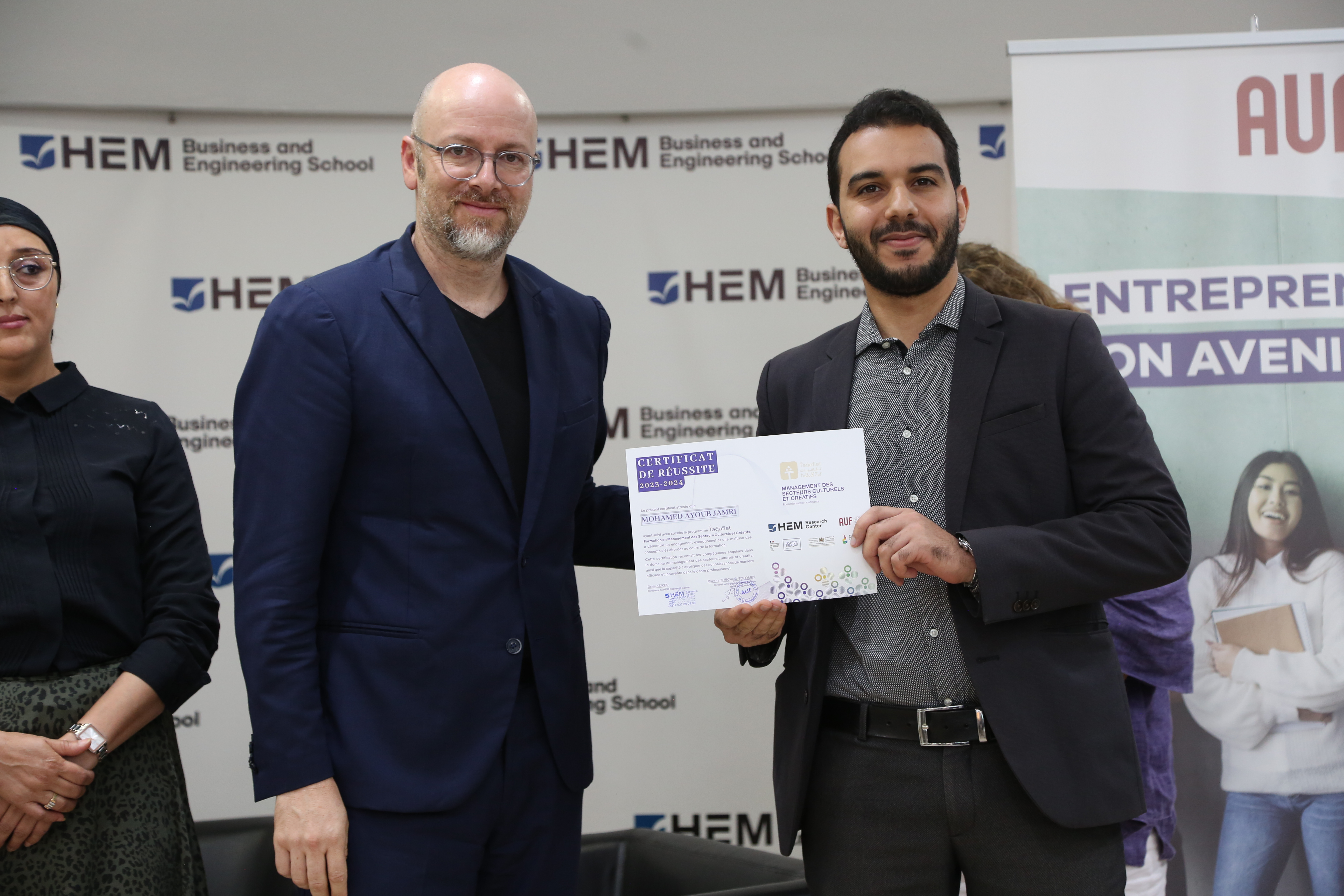 La formation aboutit à une double certification, délivrée par HEM et l’AUF, garantissant une reconnaissance académique et professionnelle significative pour les participants. La cérémonie de clôture a mis en avant les réalisations de ces derniers, célébrant leur parcours enrichissant et prometteur au sein du programme « TAQAFIAT ».