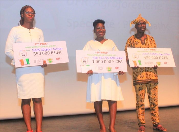 Les finales nationales du concours « Ma thèse en 180 secondes », édition 2021, organisées au Sénégal, en Côte d’Ivoire et au Burkina Faso respectivement le 19 juin, le 24 juin et le 01 juillet ont été remportées toutes par des dames qui ont décroché les premiers prix et représenteront leurs pays à la finale internationale en France au mois de Septembre. Il s’agit de Mme Aminata Sourang Mbaye DIOUF de l’Université Cheikh Anta Diop (Sénégal), de Mme Olivia ZOH de l’Université Lorougnon Guédé de Daloa (Côte d’Ivoire) et de Mme Joëlle YOUGBARE de l’Université Joseph Ki-Zerbo (Burkina Faso).