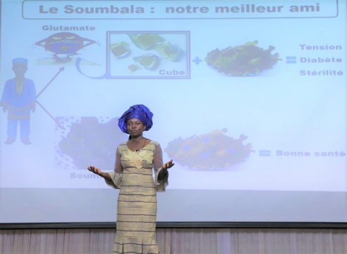 Sur les 10 candidats finalistes issus des universités publiques et privées du Burkina, qui ont participé ce jeudi 1er juillet à la finale nationale de « ma thèse en 180 secondes », Mme Joëlle YOUGBARE a su tirer son épingle du jeu et remporte le premier prix grâce à son sujet de thèse qui porte sur les : « Effets du bouillon d’assaisonnement industriel et du bouillon traditionnel (Soumbala) sur la fonction de reproduction ».
