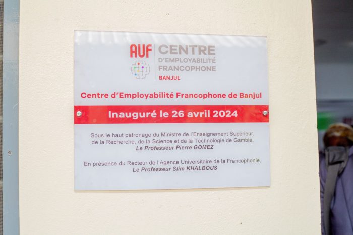 En marge de la troisième édition de la Conférence Panafricaine de l’Agence universitaire de la Francophonie (AUF) à Banjul, le Prof. Slim KHALBOUS, Recteur de l’AUF, et le Ministre de l’Enseignement Supérieur de la Gambie, le Prof. Pierre Gomez, ont eu l'honneur d'inaugurer en présence de ministres du Sénégal et de la Guinée, des Secrétaires d'État du Cap-Vert et de la Guinée-Bissau, ainsi que des représentants de ministres du Cameroun, de la Côte d'Ivoire, du Tchad, du Mozambique et de Madagascar, le Centre d’Employabilité Francophone (CEF) de Banjul, hébergé sur le Brikama College Campus de l’Université de Gambie.