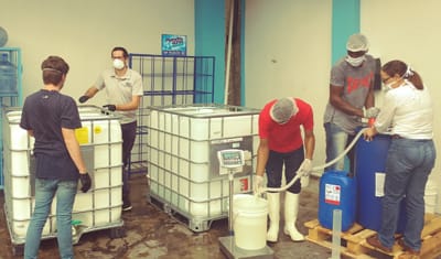 Comme réponse à ce contexte, ce projet repose sur l’alliance des compétences d’une université haïtienne et d’un groupement de 3 PME (NBC, TECMALAB, DELICEL), dont les salariés sont mobilisés des entreprises pour produire, au long de six semaines, 100.000 litres de solution et de gel hydroalcoolique à partir d’alcool produit localement (distillerie Brugal), de H2O2 et de glycérine présents sur place. Le gélifiant pour le GHA, initialement du carbopol®, sera remplacé par un gélifiant à bas d’Aloé Véra, qui sera produit localement, grâce à une technologie développée par NBC et TECMALAB, qui sera ensuite transférée vers la Faculté des Sciences de la Santé de l’UniQ, consolidant donc une coopération scientifique qui existait déjà.