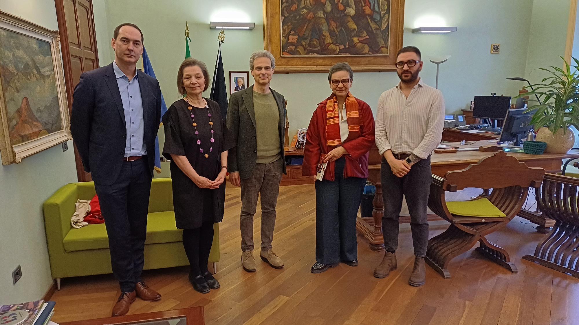 Manuela Ceretta, Rectrice de l’Université du Val d’Aoste et son équipe – Federica Locatelli, Lucia Ravagli Ceroni , Françoise Rigat et Teresa Grange – ont accueilli chaleureusement la délégation de l’Agence Universitaire de la Francophonie. L’Université du Val d’Aoste occupe une place prépondérante au sein de la Conférence régionale des Recteurs de l’AUF-EO en qualité de Vice-présidente de cette instance.