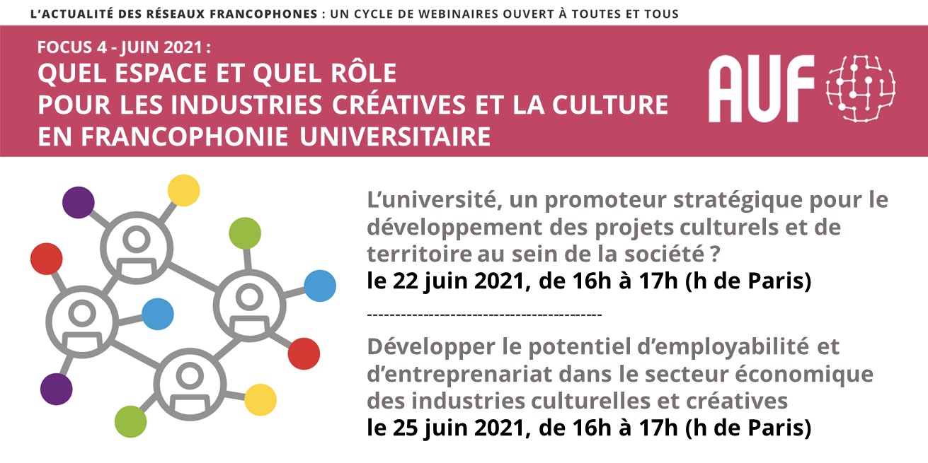 Cycle de webinaires « L’actualité des réseaux francophones » : Focus 4 : Quel espace et quel rôle pour les industries créatives et la culture en Francophonie universitaire ?