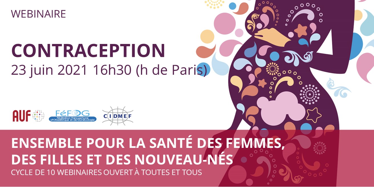 La FéFOG (Fédération Francophone d’Obstétrique et de Gynécologie) propose un programme d’échange par webinaire en partenariat avec l’AUF et avec la Conférence Internationale des Doyens et des Facultés de Médecine d’Expression Française (CIDMEF), réseau membre de l'AUF. A travers les différentes thématiques abordées lors de ce cycle de webinaires, la FéFOG inscrit son action au cœur de l’agenda 2030 et prend à son compte les Objectifs du développement Durable (ODD). Le 6ème webinaire se déroulera le 23 juin 2021 sur le thème de la contraception.