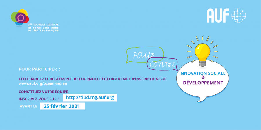 Le 7ème Tournoi inter-universitaire de débats oratoires en français est lancé ! Constituez votre équipe, inscrivez-vous pour participer au concours et représenter votre pays à la finale régionale Océan indien.