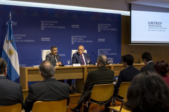 Ouverture de la réunion constitutive du Collège Doctoral Régional Andin (CDRA) par le Recteur de l´Universidad nacional Tres de febrero (Argentine), Anibal Y. Jozami, aux côtés du vice-recteur et directeur régional Amériques de l’AUF, Abderrahmane Rida.