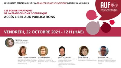 Les panélistes réunis dans ce webinaire aborderont les enjeux et défis de la publication scientifique en accès libre en français sous divers points de vue : recherche universitaire, direction de publication et organismes subventionnaires.