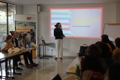 Quant au déroulement de la journée, les étudiant.e.s ont été accueillis en début de journée par un propos de bienvenue élaboré par Bénédicte Decaux, conseillère chargée des plaidoyers au cabinet du recteur de l’AUF et directrice du réseau CLÉF. Ceux-ci ont pu bénéficier d’une introduction du réseau mondial des Clubs Leaders Étudiants Francophones, en passant par une présentation des universités membres aux événements phares à venir en région Amériques. S’en est suivie la conférence « L’éducation comme outil de lutte », en tant qu’introduction à la thématique de l’inclusion et de la réduction des inégalités dans l’enseignement supérieur, animée par Laura Avril (club Frañol), accompagnée d’une session de regards croisés sur les problématiques encourues chez certain.e.s et les ébauches de solution à apporter pour un meilleur avenir. Plus tard dans la journée, les participant.e.s ont réalisé en groupes un atelier d’improvisation théâtrale sur des figures de cas diverses. À cette issue, le sujet choisi s’est porté sur le cas des étudiant.e.s en situation de précarité.
