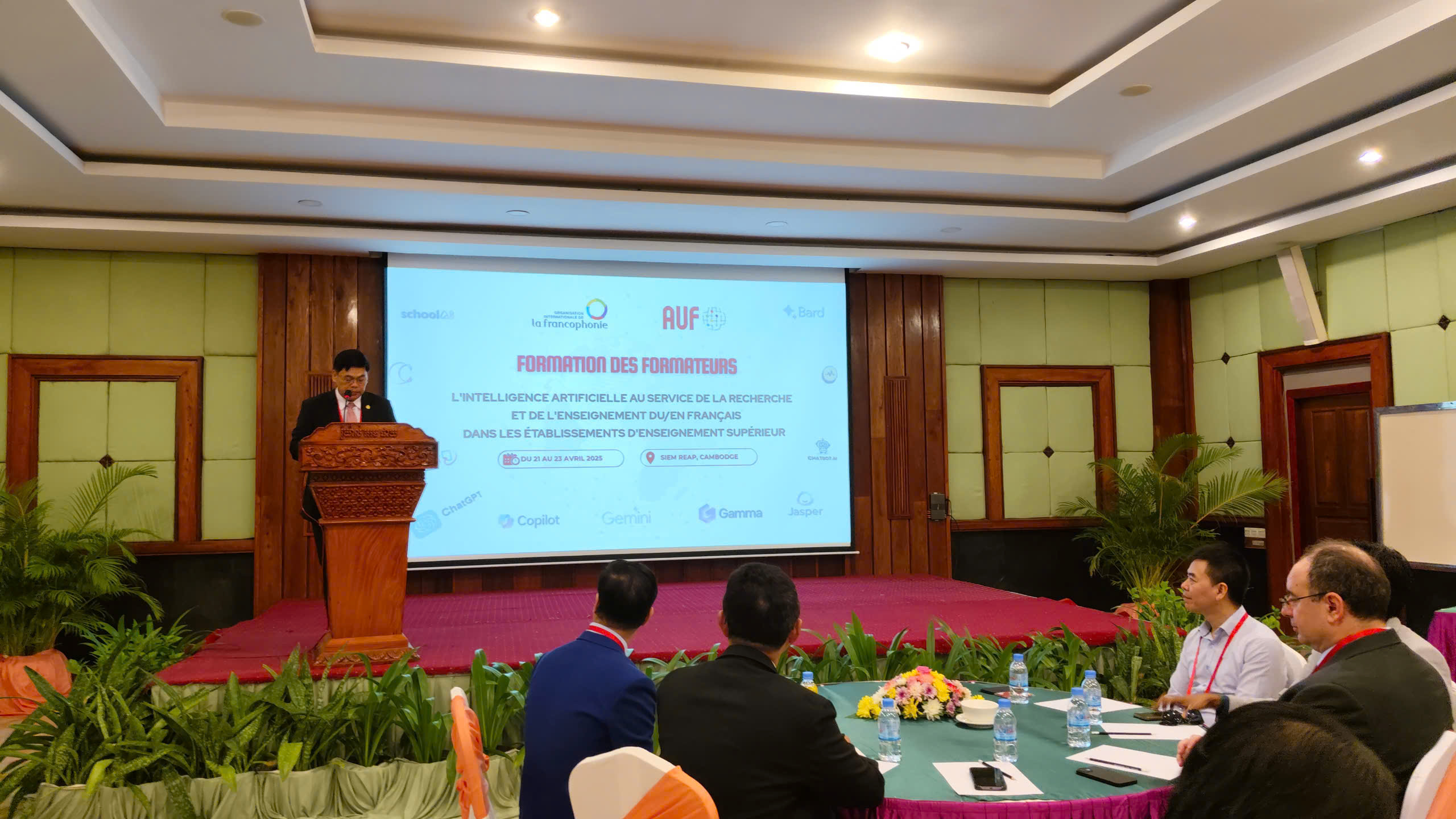 Du 21 au 23 avril 2025, une formation des formateurs intitulée « L’intelligence artificielle au service de la recherche et de l’enseignement du/en français dans les établissements d’enseignement supérieur » se tient à Siem Reap (Cambodge).