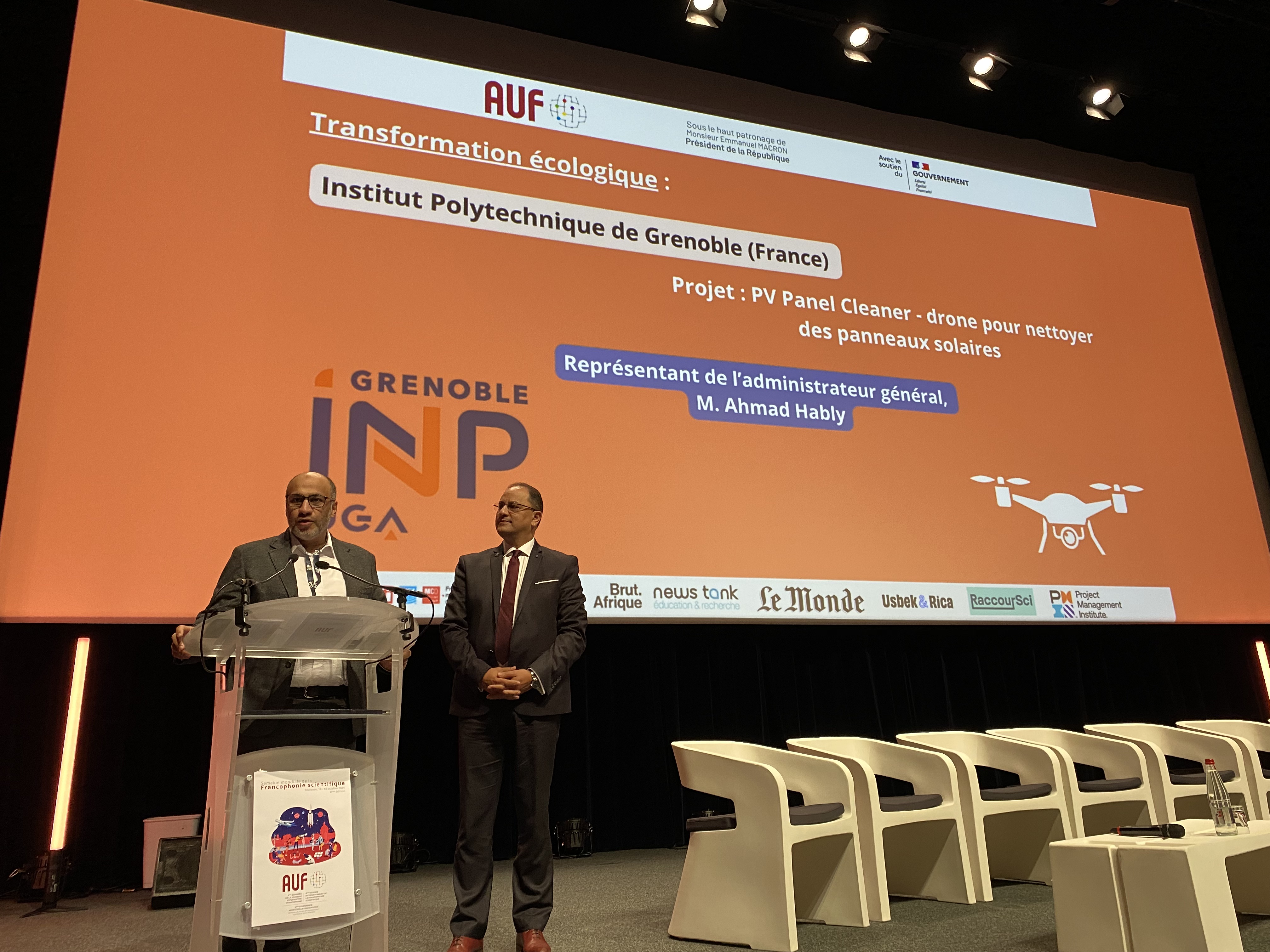 Dans la catégorie Transformation Écologique, l’Institut Polytechnique de Grenoble, représenté par le Pr. Ahmad Hably, a reçu le Prix de l’Innovation pédagogique 2024 pour le projet “PV Panel Cleaner : Projet d’ingénierie pour la mise en œuvre d’un drone capable de nettoyer des panneaux solaires”.