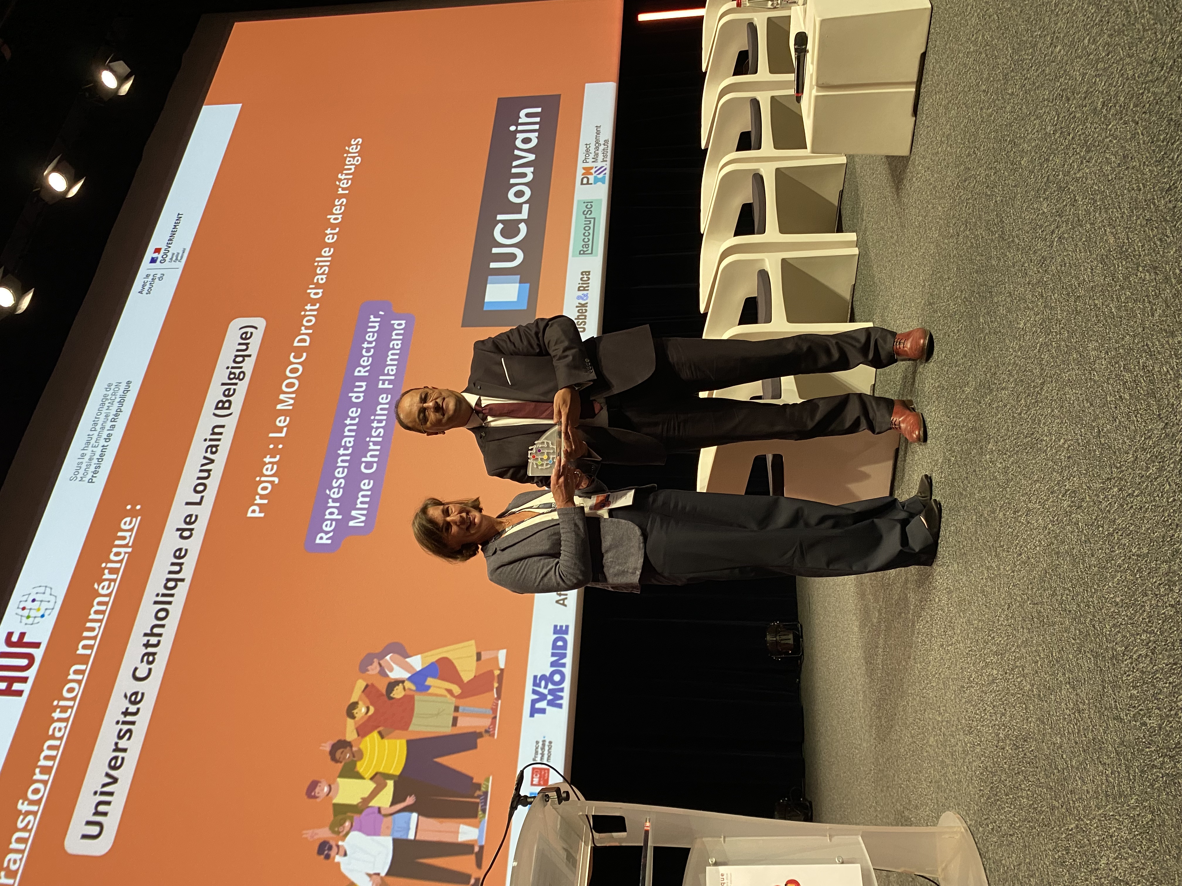 Dans la catégorie Transformation numérique, l’Université Catholique de Louvain représentée par Mme Christine Flamand, chercheuse, a reçu le Prix de l’Innovation pédagogique 2024 pour le projet “Le MOOC Droit d’asile et des réfugiés”.