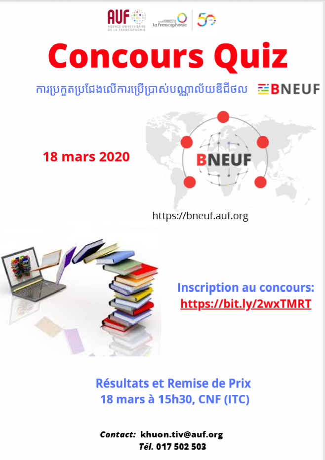 L’ampleur de la crise sanitaire internationale nous contraint à reporter la Conférence annuelle sur le numérique dans l’espace universitaire francophone – IDNEUF5 – prévue les 17, 18 et 19 juin prochain à la Ville de Québec. Nous remercions vivement les équipes du gouvernement du Québec, de l’OIF ainsi que toutes celles de l’AUF qui se sont fortement investies à ce jour dans l’organisation de cet événement important. Nous sommes désolés des inconvénients occasionnés et vous reviendrons dès que possible avec un nouveau calendrier.