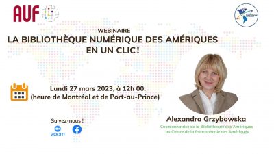 Organisation : Agence universitaire de la Francophonie, en partenariat avec le Centre de la Francophonie des Amériques