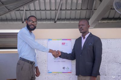 L’AUF, via un partenariat avec l’École Supérieure d’Infotronique d’Haïti (ESIH), a mis également à la disposition des établissements membres dans la région du Grand Sud une plateforme de formation à distance qui sera utilisée dès la rentrée d’octobre 2022. Au cours de cette cérémonie, deux enseignants des Cayes et des Nippes ont présenté leurs cours sur la plateforme de formation à distance. Des matériels informatiques, tablettes et ordinateurs portables seront mis à la disposition des étudiants et des enseignants dès la rentrée.