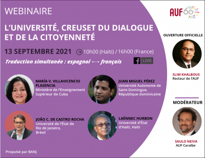 Dans le cadre de la commémoration des 60 ans de l’Agence universitaire de la Francophonie (AUF), la Direction régionale Caraïbe a proposé ce cycle de webinaires articulé autour de l’actualité scientifique francophone. La totalité des activités est réalisée en visioconférence.