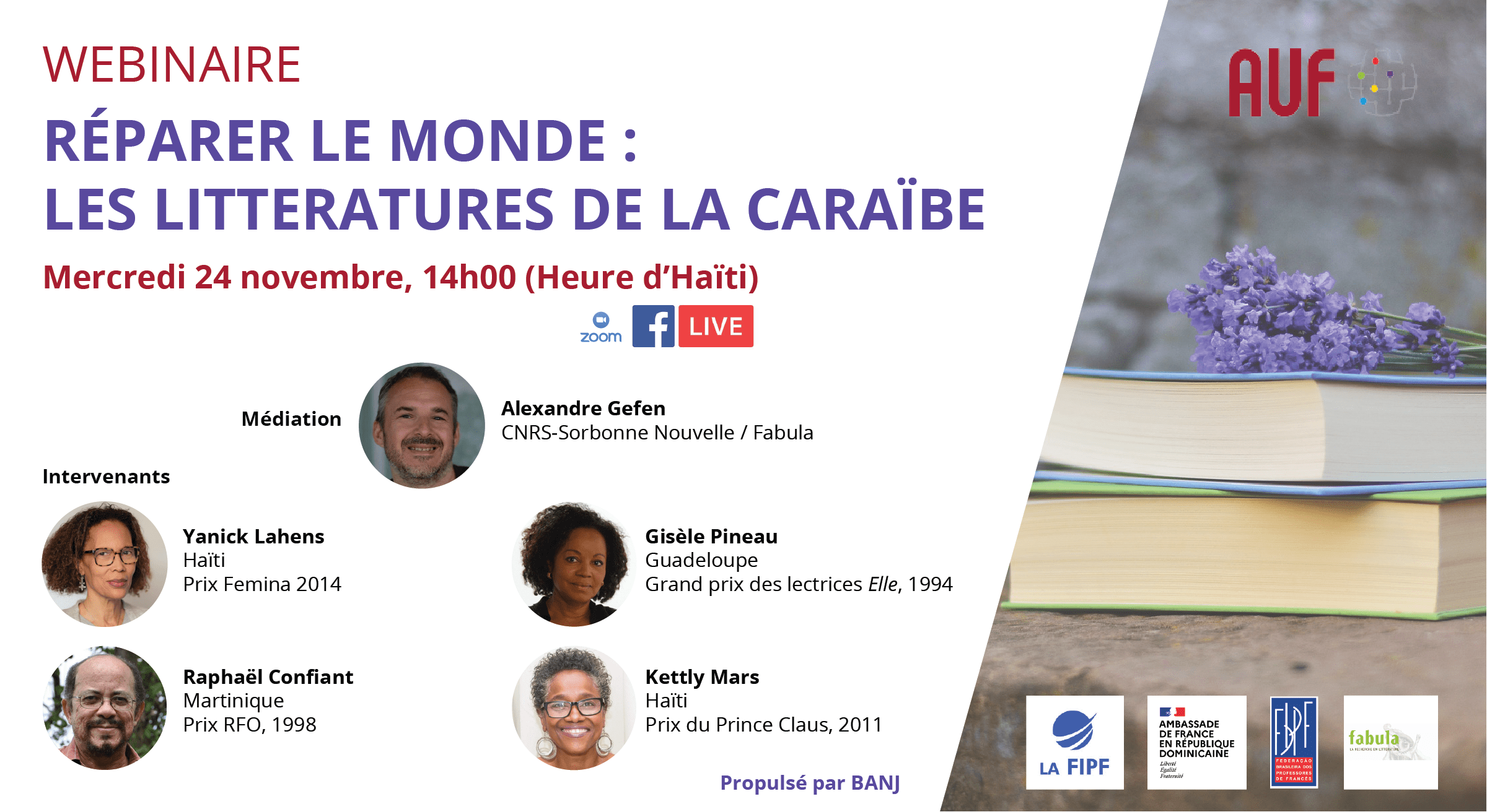À l’occasion de la Journée internationale des professeurs de français (JIPF), l'Agence universitaire de la Francophonie (AUF), en collaboration avec la Fédération Internationale des Professeurs de Français (FIPF), lance un dossier pédagogique intitulé « Réparer le monde : les littératures de la Caraïbe ». Le dossier sera présenté au grand public le 24 novembre, à 14h (heure d'Haïti), durant le webinaire en rapport avec la thématique.