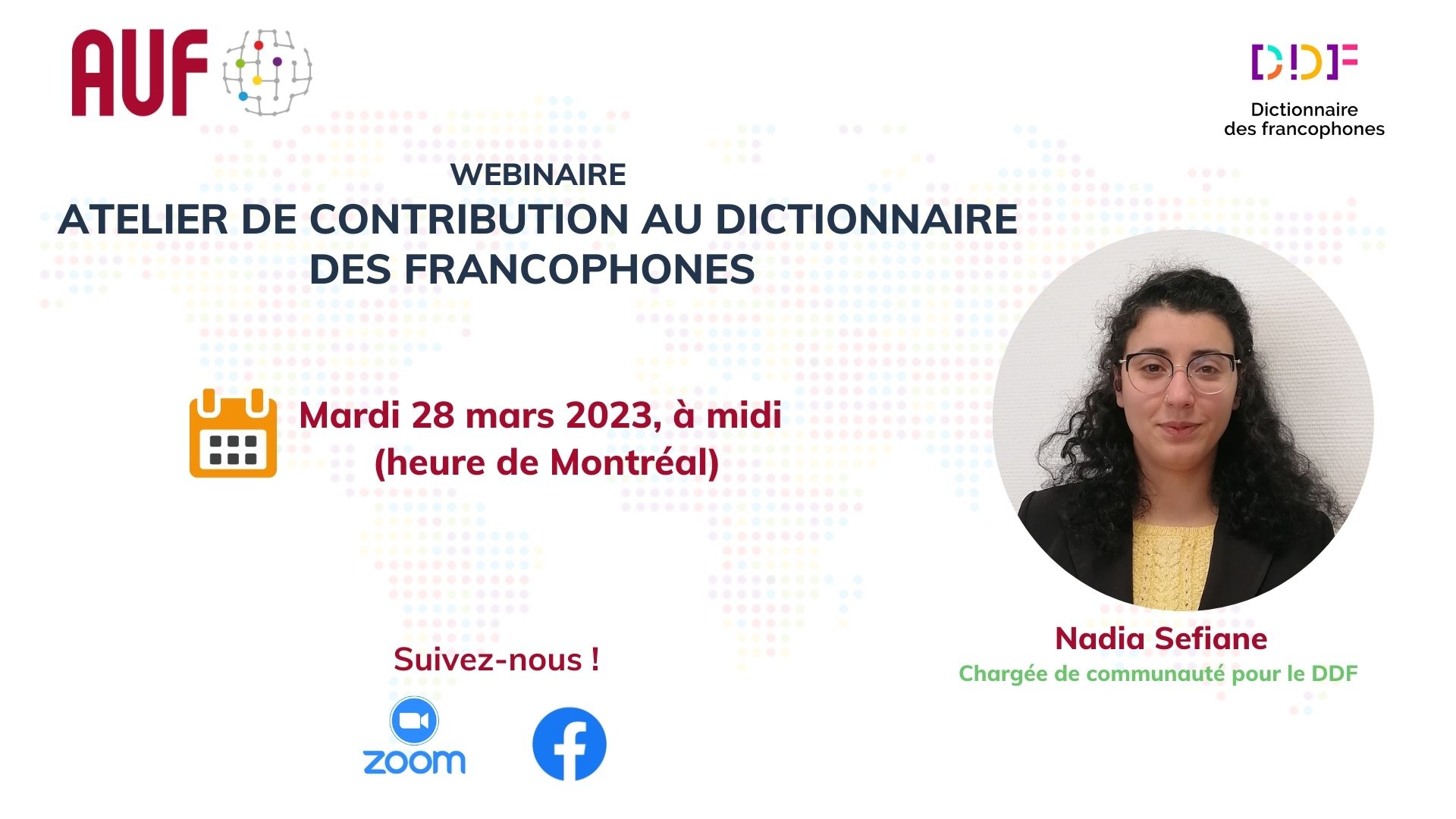À l’occasion de la célébration de la Journée internationale de la Francophonie, le 20 mars, l’AUF Caraïbe coordonne, en partenariat avec le Dictionnaire des Francophones (DDF), un atelier international de valorisation et de contribution au DDF. L’activité se déroulera en ligne le mardi 28 mars 2023, à midi (heure de Montréal et Port-au-Prince).