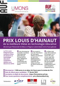L’Université de Mons (Belgique) et l’Agence universitaire de la Francophonie (AUF) s’associent pour décerner le Prix Louis D’Hainaut de la meilleure thèse de doctorat en technologie éducative.
