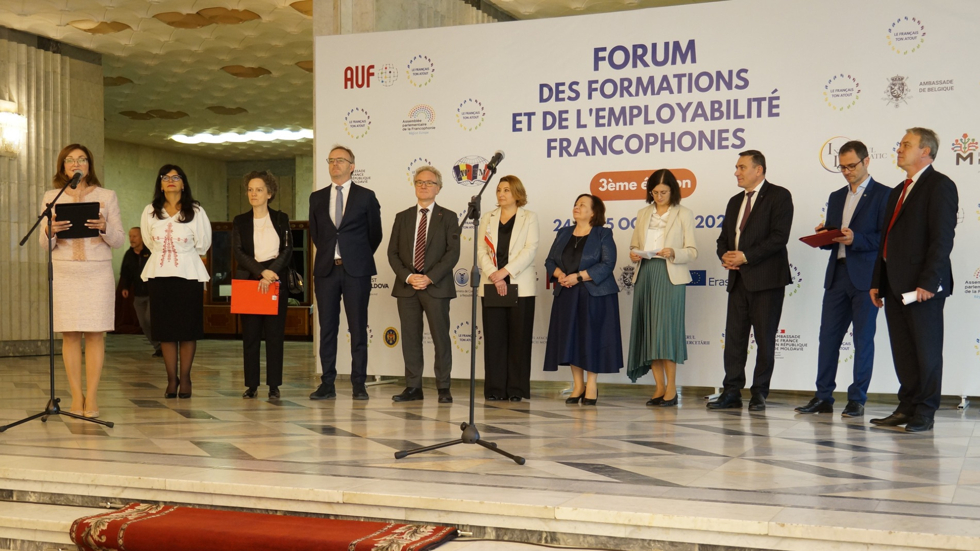 Retour sur le 3e Forum des Formations et de l’Employabilité Francophones en Moldavie qui a eu lieu les 24 et 25 octobre. Cet événement a été organisé par le Bureau National AUF-Moldova en partenariat avec l’Ambassade de France et le Bureau de la Coopération Suisse en République de Moldova, avec le soutien du Ministère de l’Education et de la Recherche, le Ministère des Affaires Etrangères, le Ministère du Travail et de la Protection Sociale de la République de Moldova, l’Assemblée Parlementaire de la Francophonie, l’Ambassade du Royaume de Belgique en République de Moldova, la Chambre de Commerce et d’Industrie de la République de Moldova, l’APFM, Moldova Invest et le Bureau Erasmus+ Moldova.