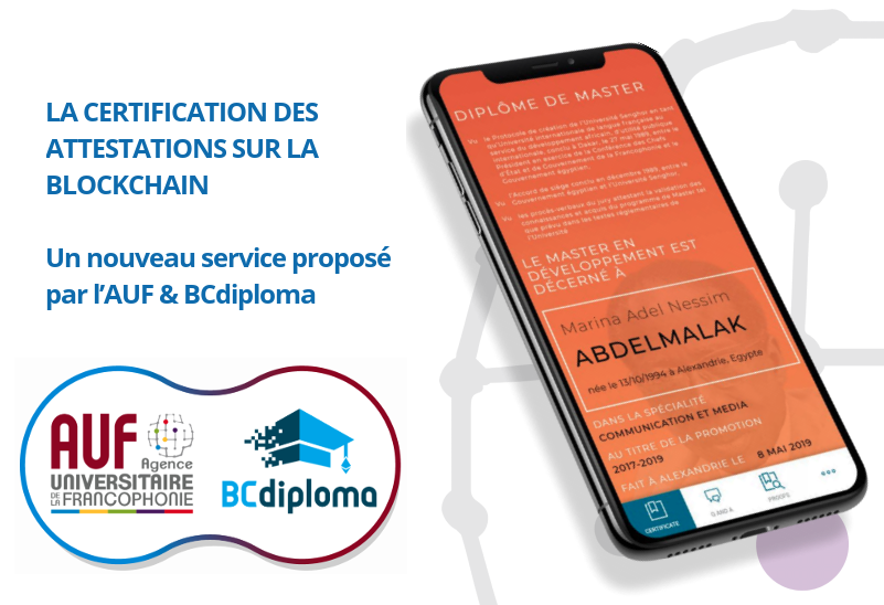 L’Agence universitaire de la Francophonie, en partenariat avec BCdiploma, propose aux établissements d’enseignement supérieur et de recherche membres un service blockchain d’authentification numérique des diplômes.