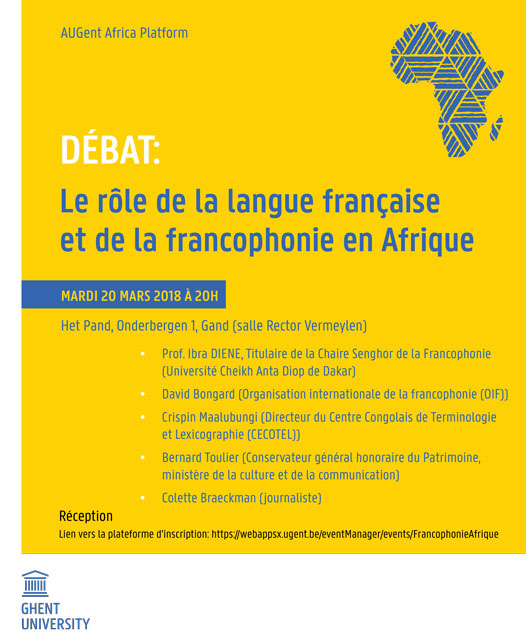 - 20 mars 2018, à Gand (Belgique) : Journée de la Francophonie/ « Le rôle de la langue française et de la francophonie en Afrique«