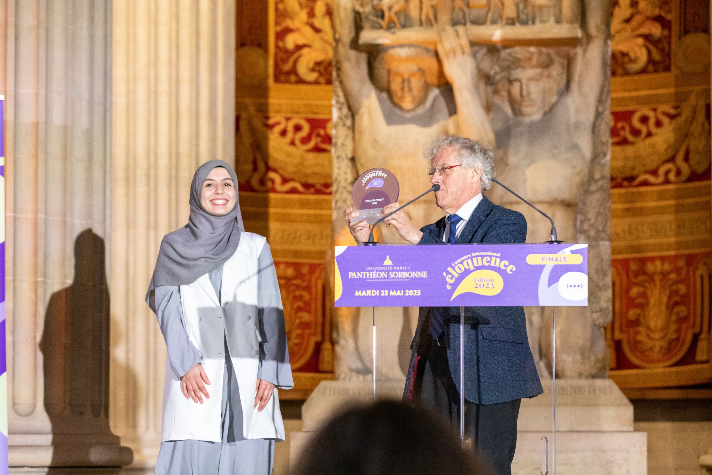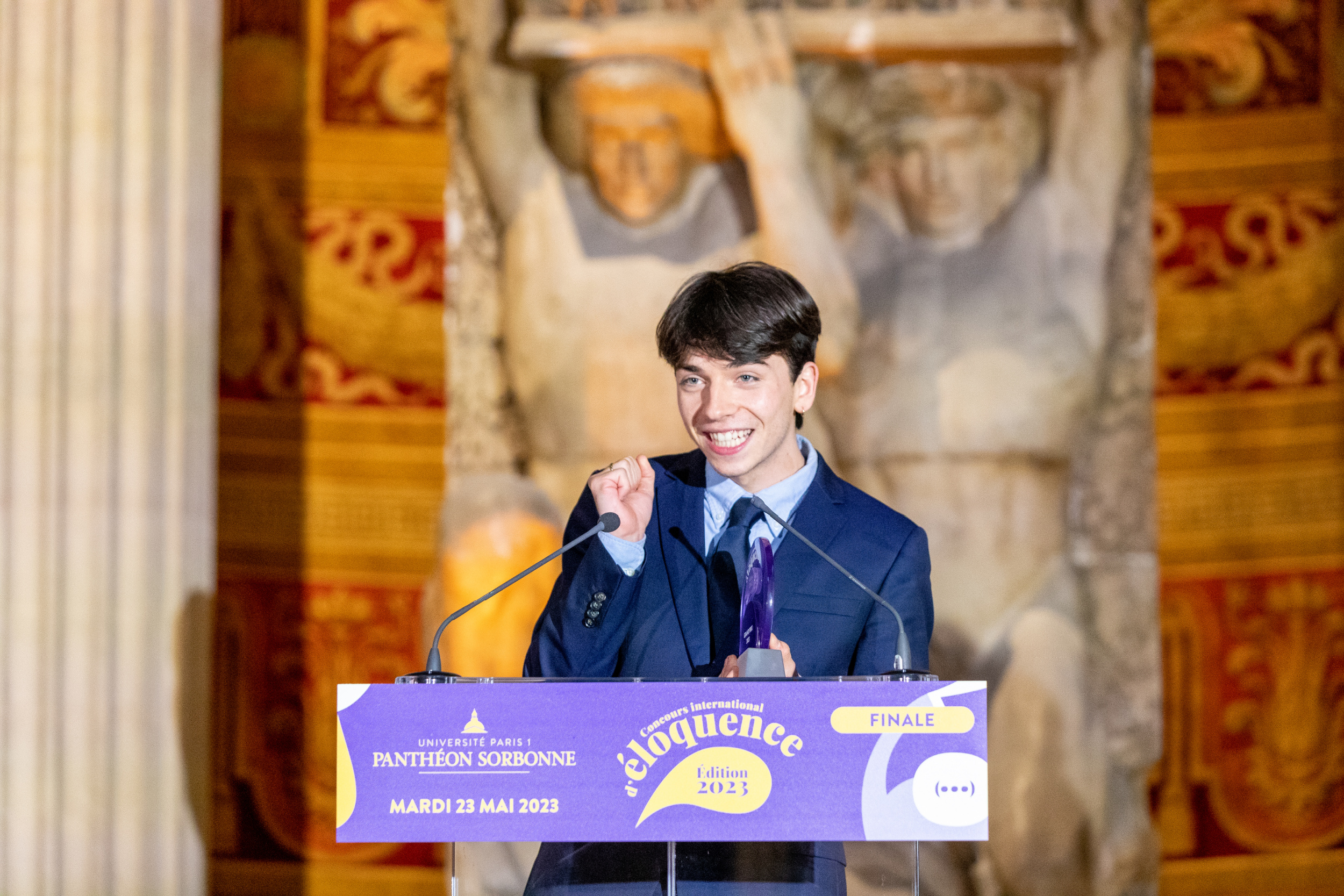 Convaincre, émouvoir et persuader étaient les maîtres-mots de cette soirée qui a mis à l’honneur l’éloquence universitaire dans le décor exceptionnel du Panthéon. Plus de 300 personnes étaient présentes lors de la soirée et plus de 4 000 personnes ont suivi l’évènement en direct. La comédienne et réalisatrice Zabou Breitman, marraine de l’édition 2023 a souhaité bonne chance aux candidats lors de son introduction : « Aujourd’hui ce n’est pas à moi de parler, alors profitez ! Sachez que l’on vous aime. Je vous dis merde avec beaucoup d’amour et de respect. »