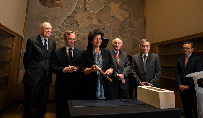De gauche à droite : Jean-Marc Sauvé, Vice-président honoraire du Conseil d’État, Président de la Fondation Cité internationale universitaire de Paris ; Jean-Baptiste Lemoyne, Secrétaire d’État auprès du ministre de l’Europe et des Affaires étrangères ; Frédérique Vidal, Ministre de l’Enseignement supérieur, de la Recherche et de l’Innovation ;Jean-Paul de Gaudemar, Recteur de l’Agence universitaire de la Francophonie ; Gilles Pécout, Recteur de la région académique Île-de-France, Recteur de l’académie de Paris, Chancelier des universités de Paris ; Philippe Jung, Directeur général de Demathieu Bard Immobilier. ©Nassima Boutadjine/AUF