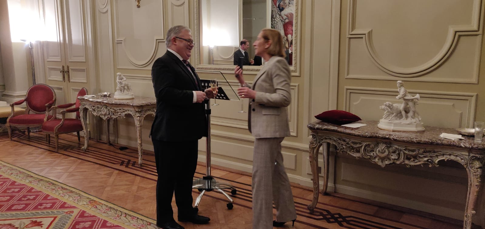L’Ambassadrice de France en Belgique, Madame Hélène FARNAUD-DEFROMONT, a remis, le 6 février 2020 à Bruxelles, Belgique, les insignes de Chevalier dans l’Ordre des Palmes Académiques à Monsieur Ciprian MIHALI, Directeur de l'AUF en Europe de l'Ouest, au cours d’une cérémonie à la Résidence de France.
