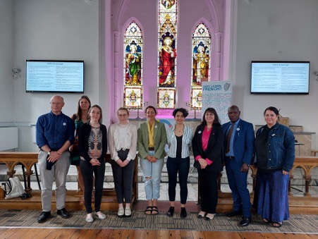 De gauche à droite : M. Lewis Purser, Directeur Learning, Teaching & Academic Affairs à l’IUA ; Dr. Aurélie Van Hoye, Associate Professor, Marie Curie Fellows at the University of Limerick ; Marjorie Metzger, 3eme Grand Prix du Jury ; Aisling McNally, Prix de la Francophonie ; Astrid Dedieu, 2ème Grand Prix du Jury et Prix du Public ; Annael Sort-Montenegro, 1er Grand Prix du Jury ; Mrs Selima Benahmed, Deputy Head of Mission à l’Ambassade du Maroc ; Dr. Théophile Munyangeyo, Directeur adjoint du Trinity Centre for Global Intercultural Communications ; Mme Caroline Viguier, Vice-présidente de la French Tech Dublin