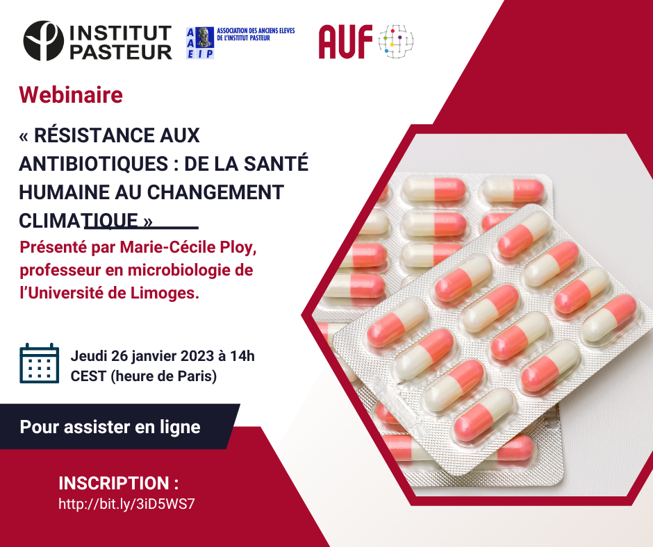La prochaine webconférence, organisée par l’Association des Anciens Élèves de l’Institut Pasteur (AAEIP) en collaboration avec la Direction de l’Enseignement de l’Institut Pasteur et l'AUF Europe Occidentale, sera donnée le jeudi 26 janvier 2023 à 14h CEST (heure de Bruxelles).