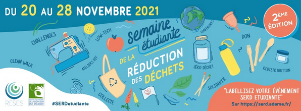 En 2021, le RESES lance la deuxième édition de la Semaine Étudiante de la Réduction des Déchets ! Elle se déroule du 20 au 28 novembre en même temps que la Semaine Européenne de Réduction des Déchets. Elle est l’occasion pour les étudiant.e.s de faire partie d’un grand mouvement, de se former sur la thématique, de sensibiliser leurs pairs, de créer des contenus constructifs et surtout agir pour la réduction des déchets.