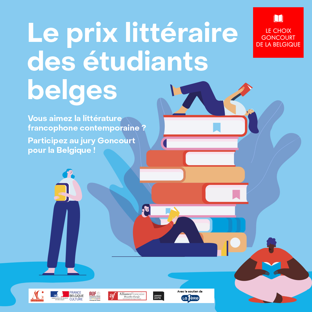 L’Ambassade de France en Belgique, l’Agence universitaire de la Francophonie en Europe de l’Ouest et l’Alliance Française de Bruxelles-Europe, en collaboration avec Passa Porta, la maison internationale des littératures à Bruxelles, lancent la quatrième édition du prix littéraire étudiant Le choix Goncourt de la Belgique.