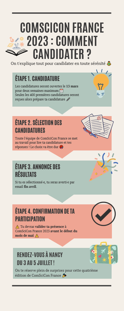 ComSciCon est arrivé en France avec une première édition en Septembre 2020 à l’Université Paris-Saclay, suivie par une édition en numérique en Septembre 2021. La prochaine édition de ComSciCon aura lieu du 3 au 5 juillet à Nancy.