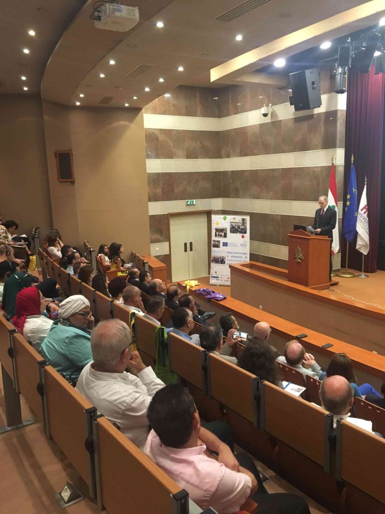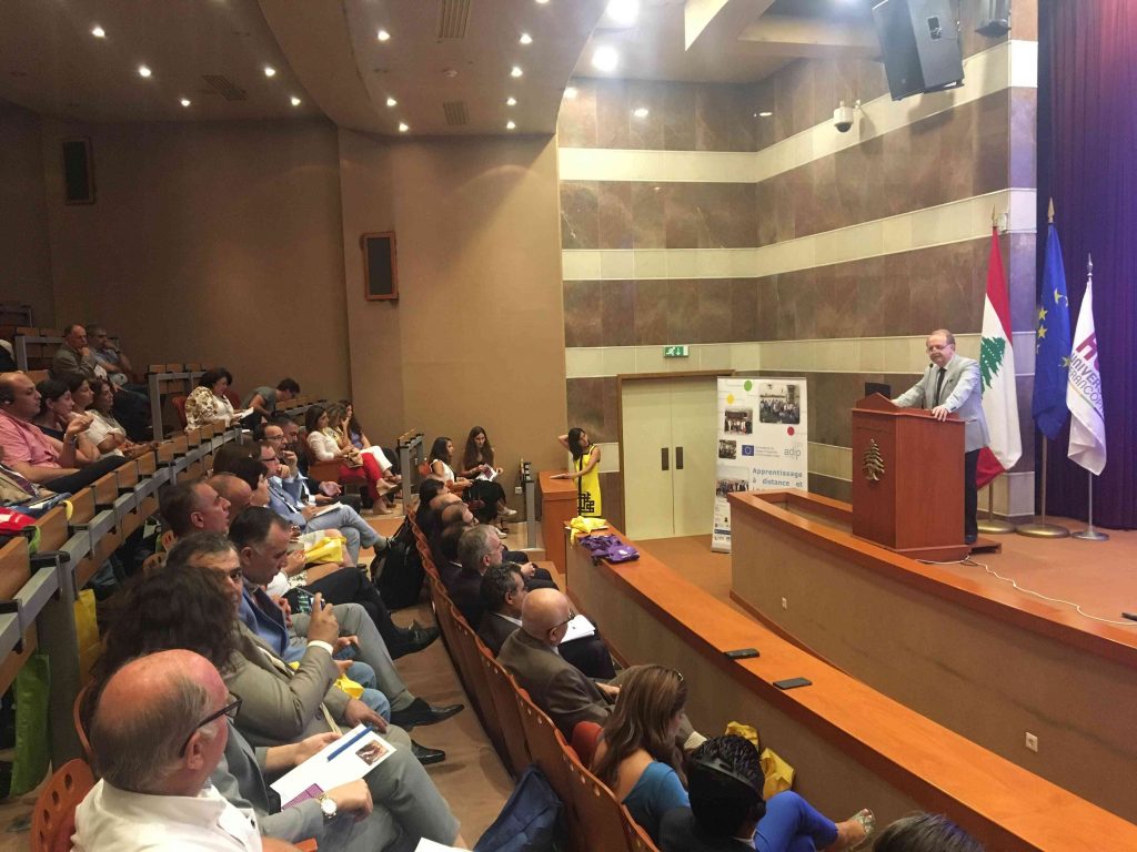 La cérémonie de clôture du projet Tempus « Apprentissage à distance et innovation pédagogique » (ADIP), financé par l'Union européenne, s'est tenue le 12 juillet 2017 à Beyrouth au Ministère de l'Éducation et de l'Enseignement supérieur. Placée sous le haut parrainage de S.E.M. Marwan Hamadé, Ministre de l'Éducation et de l'Enseignement supérieur, elle a permis de présenter les résultats du projet et ses livrables en présence des partenaires libanais, égyptiens, français, belges et roumains, ainsi que des représentants des milieux universitaire et professionnel.