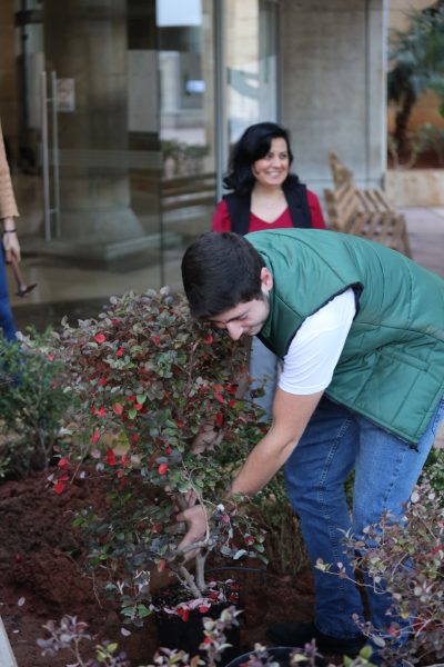 A l’Université La Sagesse (Beyrouth), l’action de plantation a eu lieu devant la bâtisse centrale du campus principal à l’occasion de la tenue de la 14ème Assemblée générale de la Conférence des Recteurs de la région Moyen-Orient (CONFREMO).