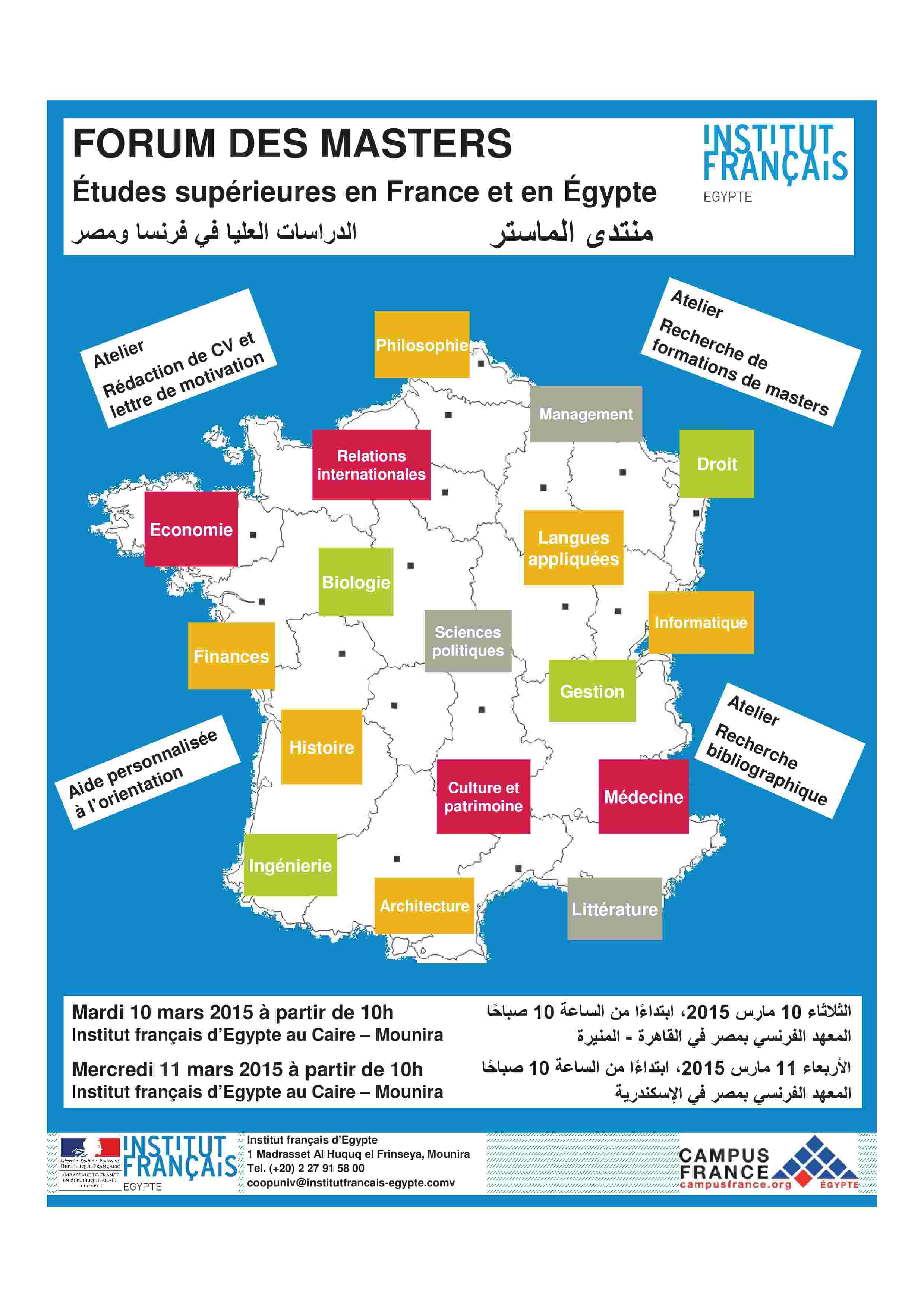 À l'occasion du Forum des Masters, organisé par l'Institut français d'Égypte au Caire le 10 mars et à Alexandrie le 11 mars 2015, la responsable du CNF d'Alexandrie, Omneya Shaker, a fait une...