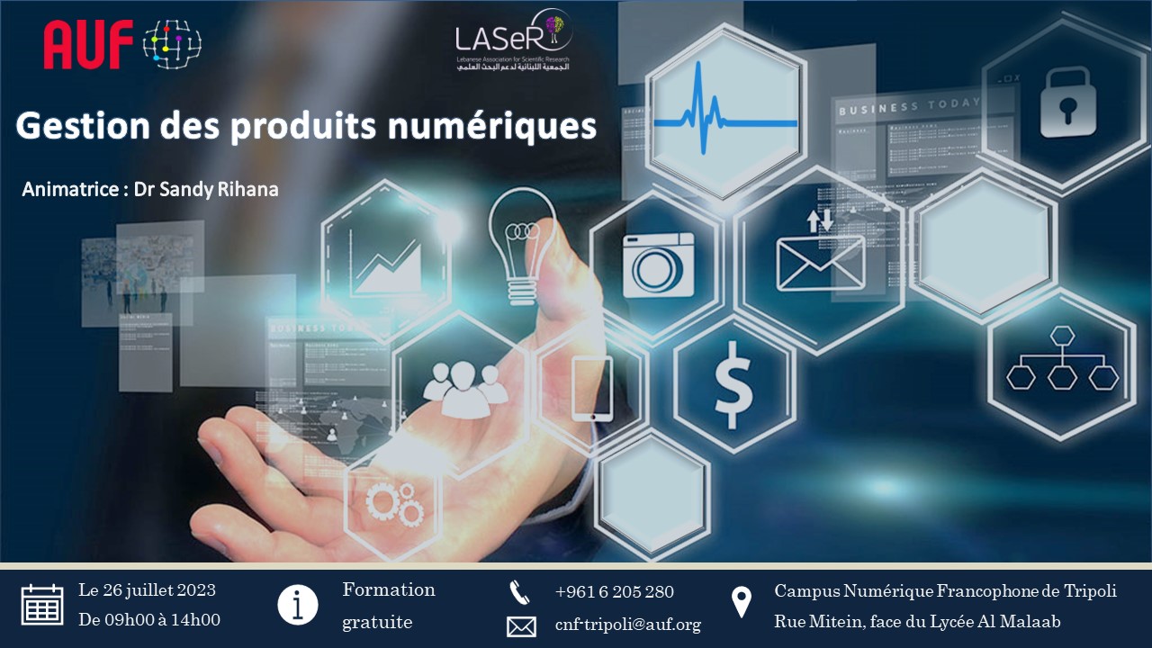 Le Campus Numérique Francophone de Tripoli organise, en collaboration avec l’association LASeR, une formation intitulée « Gestion des produits numériques ».