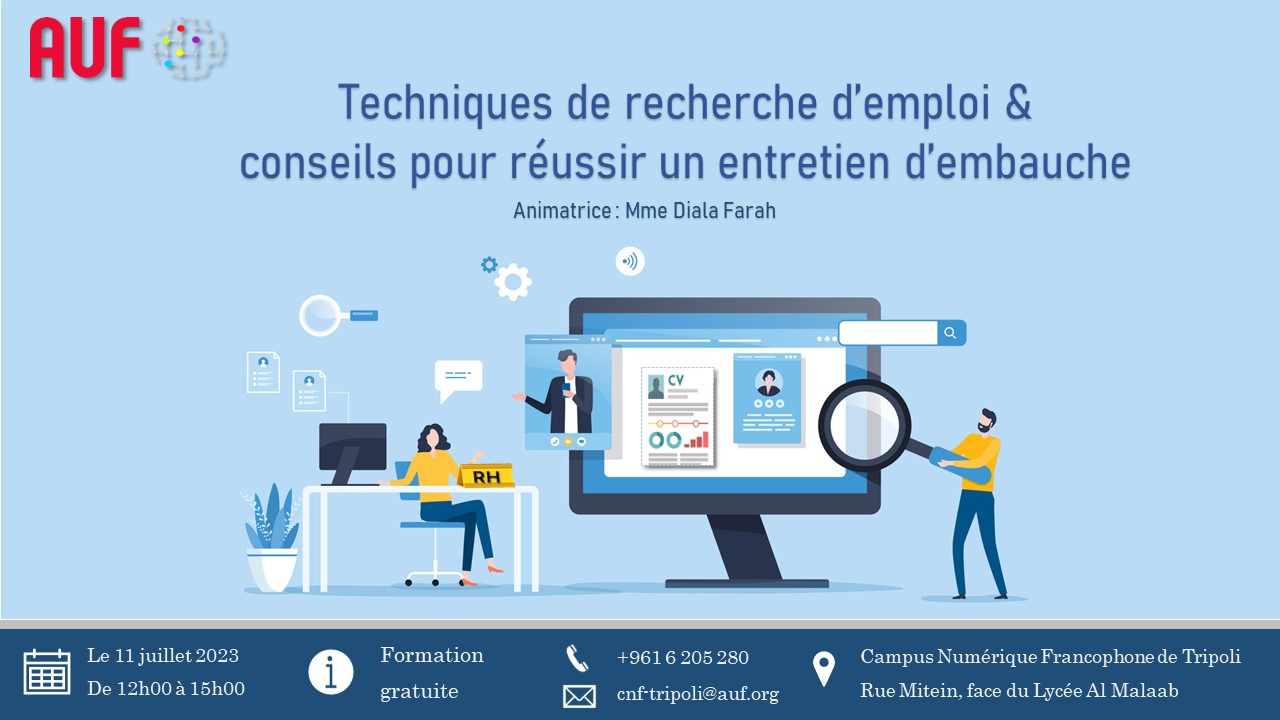 Le Campus Numérique Francophone de Tripoli de l'AUF organise une formation intitulée « Techniques de recherche d’emploi et conseils pour réussir un entretien d’embauche ».