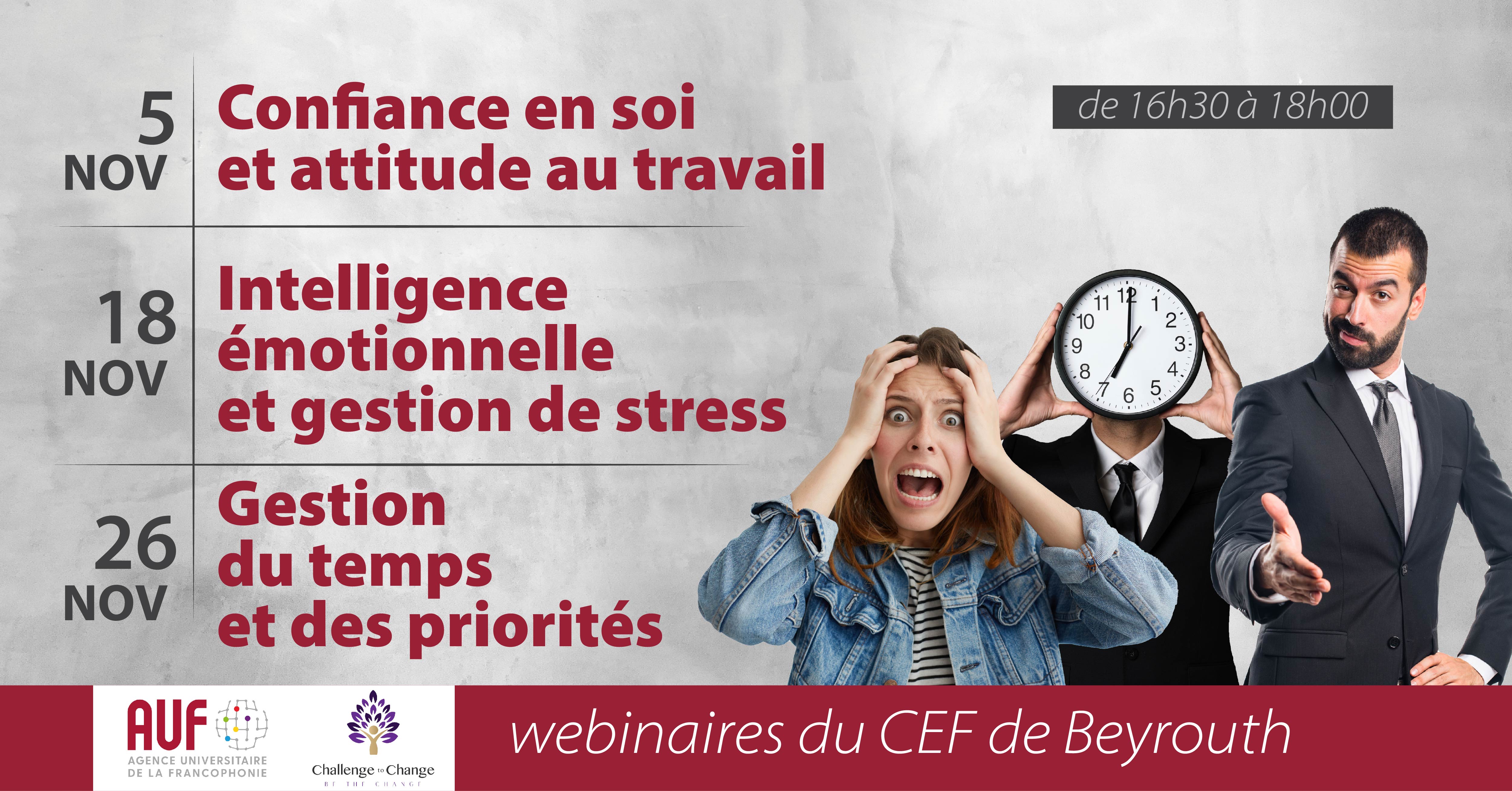 Le CEF de Beyrouth (Centre d’employabilité francophone de l’AUF), en collaboration avec l’association « Challenge to change (C2C) », lance une série de webinaires sur le « Parcours vers la réussite professionnelle » durant le mois de novembre.