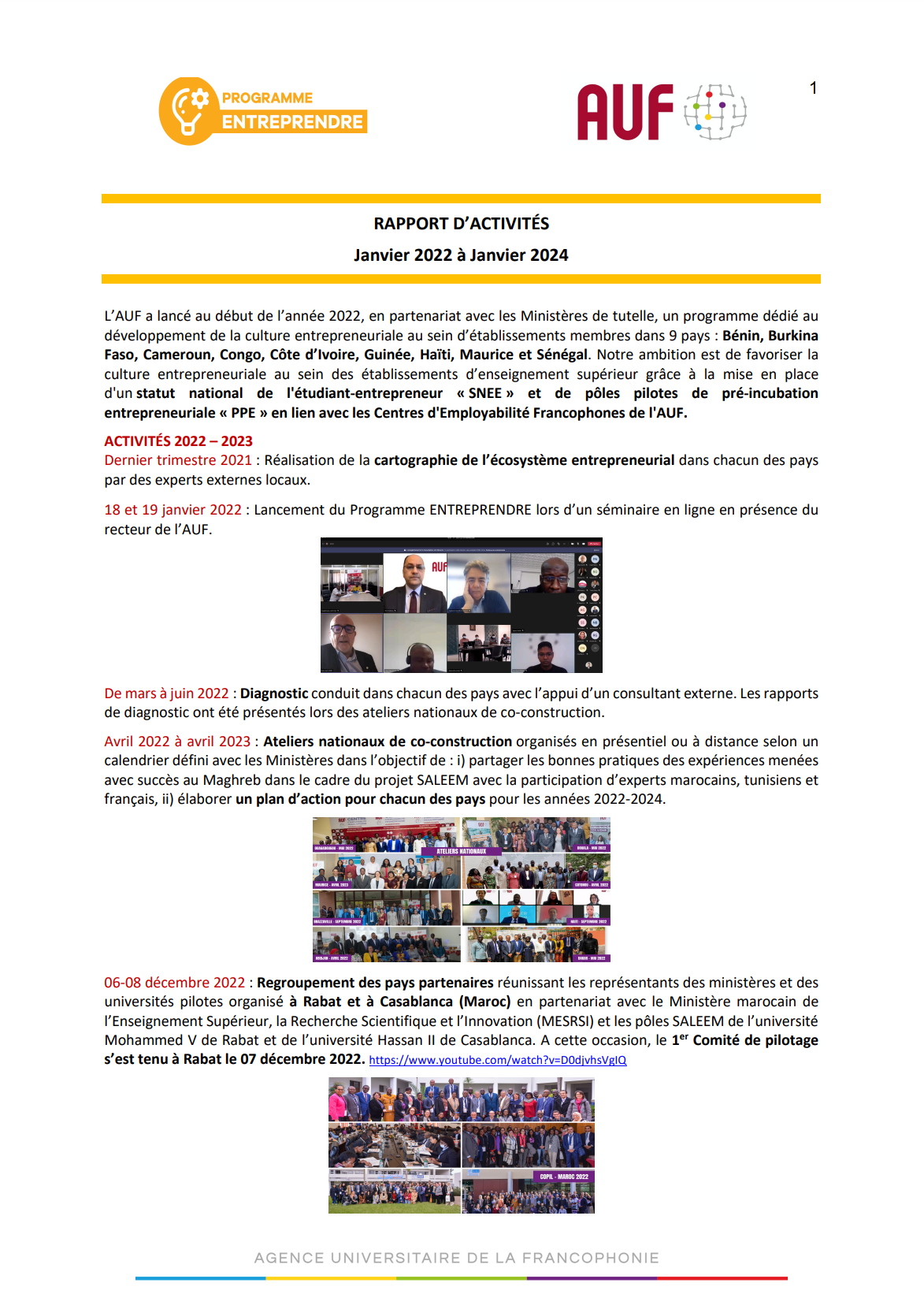 Rapport d’activités ENTREPRENDRE – 2022-2024