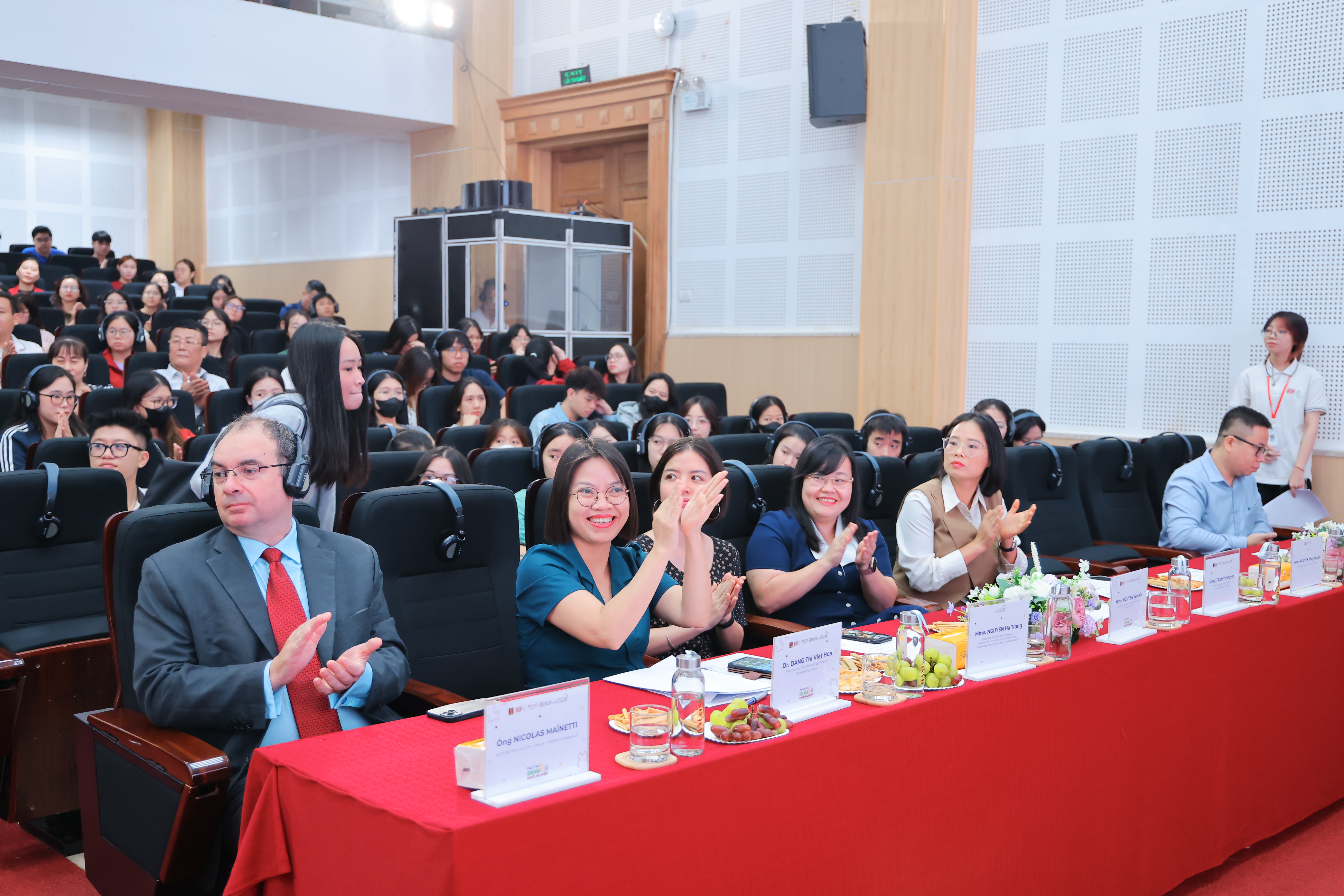 Lors de son discours d’ouverture, le Prof. Nicolas Maïnetti, Directeur régional de l’AUF – Asie-Pacifique a chaleureusement salué la participation, ainsi que les excellents résultats et les productions réalisées par les étudiants talentueux : « Je veux maintenant m’adresser directement aux jeunes finalistes ici présents. Vous appartenez à une génération qui regarde vers l’avenir avec lucidité et ambition. Dans un monde en pleine mutation — marqué par la transition écologique, la révolution numérique et les défis sociaux — vos idées comptent. Vous êtes les acteurs d’un changement nécessaire.