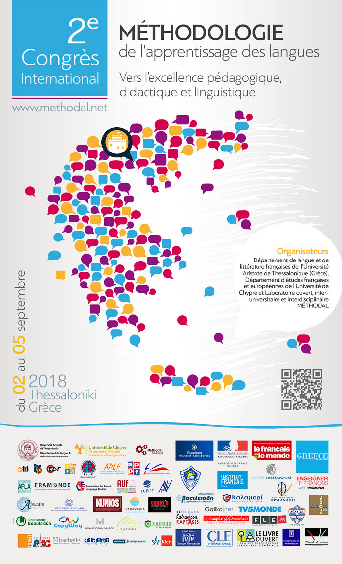2-5 septembre 2018, à Thessalonique (Grèce) : « MÉTHODAL 2018 – 2e Congrès international – Méthodologie de l’apprentissage des langues : vers l’excellence pédagogique, didactique et linguistique »
