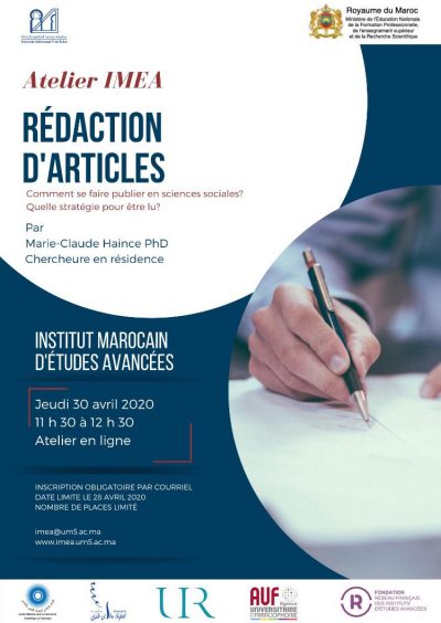 - Atelier « Comment se faire publier en sciences sociales ? » : Premier atelier en ligne l’IMEA le 30 avril 2020