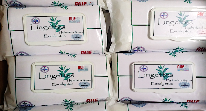Bien. Au terme de ce projet, les résultats attendus ont largement été atteints. Il était prévu de produire 200 paquets de 50 lingettes hydroalcooliques et il a été produit 300 paquets de 50 lingettes, soit un total de 100 paquets de 50 lingettes de plus. Il est primordial de comprendre que pour une lutte totale et efficace contre la COVID-19, il est plus qu’essentiel de mener le combat sur tous les fronts étant donné que le virus, en plus de se transmettre par le contact direct « mains à mains », peut se propager au travers des surfaces contaminées (poignées de portes, tables, claviers, téléphones…) qui constituent notre environnement de tous les jours. Ces lingettes constituent donc une solution directe et efficace pour un nettoyage complet et sécurisant de notre environnement.