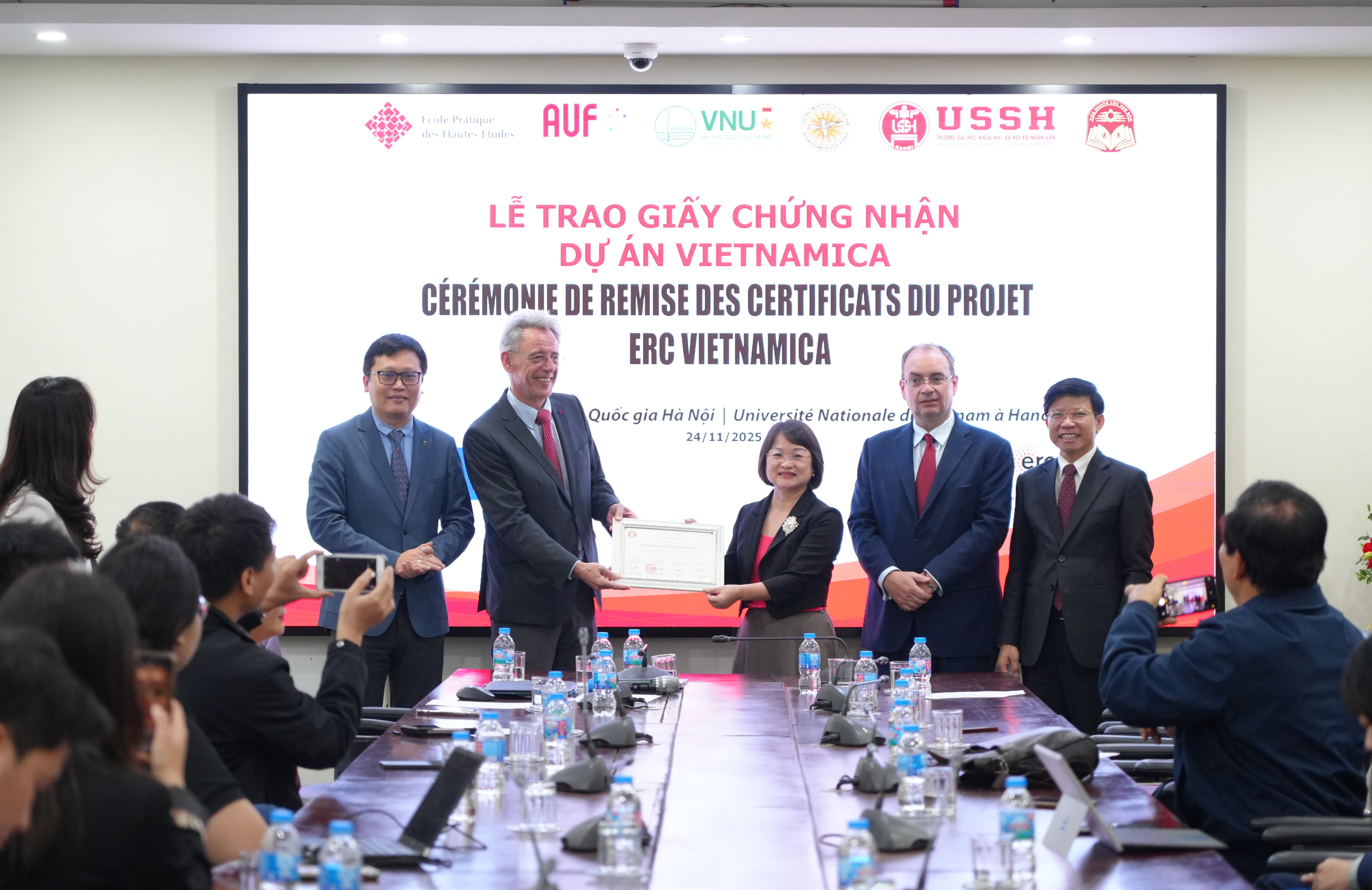 Le 24 novembre 2024, à l’Université des Sciences sociales et humaines, Université nationale du Vietnam à Hanoï (USSH-UNV Hanoï), le Comité directeur du projet Vietnamica a organisé la cérémonie de remise des certificats aux doctorants, étudiants et jeunes chercheurs ayant participé au projet.