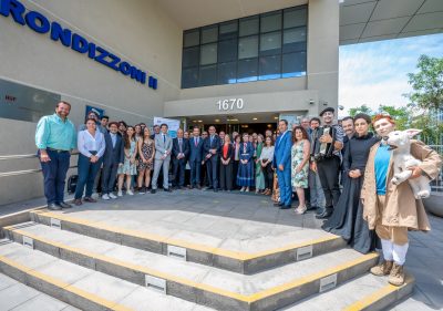 Plusieurs convives rassemblés devant l’Université Bernardo O’Higgins, au Chili, pour l’inauguration du CEF-CNF5.0