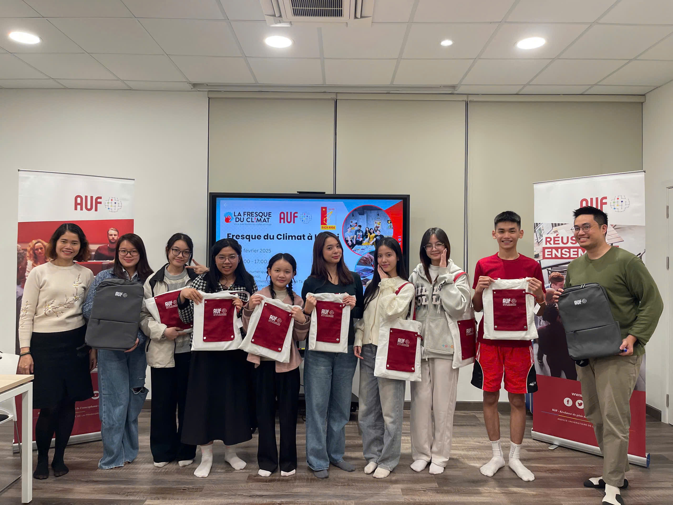 Le 15 février 2025, l’AUF – Asie-Pacifique, en partenariat avec la Fresque du Climat, l’Institut de Recherche pour le Développement (IRD) et l’Institut Polytechnique de Hanoi (HUST), a organisé au Campus numérique francophone (CNF) de Hanoi, une session unique et interactive dédiée à la compréhension du changement climatique.